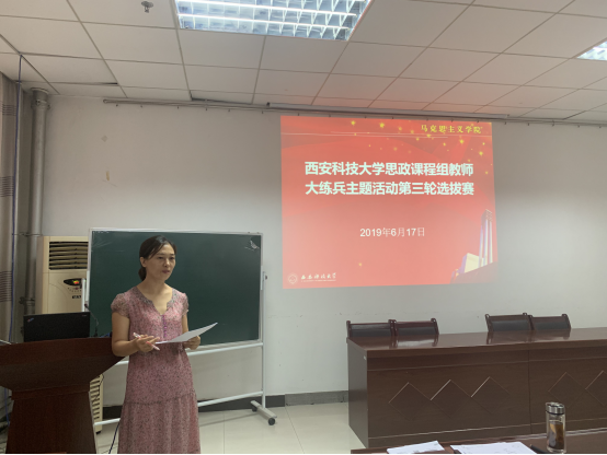 第三轮选拔赛邀请了全国高校思政课教学能手、2018年度陕西省高校思政课教师“大练兵”标兵、西北大学苟昭赟老师担任评议组组长,公司9名思政课教师参加了选拔赛。评委从参赛教师的选题入手,围绕思政课讲课比赛如何凝神聚气和发力,对参赛教师的参赛素材取舍、多媒体课件、肢体语言、表述方式等方面进行了全面点评和指导。