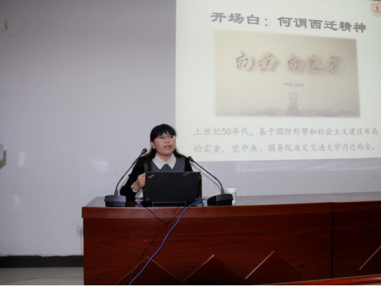 本次报告会邀请西安交通大学博士生导师樊晓燕副教授主讲,委书记袁金群主持。樊晓燕首先用“胸怀大局、无私奉献、弘扬传统、艰苦创业”这十六个字全面系统地概括了西迁精神,并从西迁精神的历史维度、实践维度、理想维度进行了详细的讲述。指出西迁精神根植于深厚的中华传统文化,是民族精神的体现和凝结,是知识分子家国情怀的集中体现,更是中华民族精神脊梁中光芒万丈的一段。现代大学应践行传承文明、提供知识、引领价值的使命,在不同的历史阶段,与国家同呼吸共命运。西迁精神就是这样一段宝贵的历史,西迁的故事已经远去,但西迁精神永不退色。西迁精神的内涵将随着时间的推移凝结为一种气质,引领着社会的前进方向。
