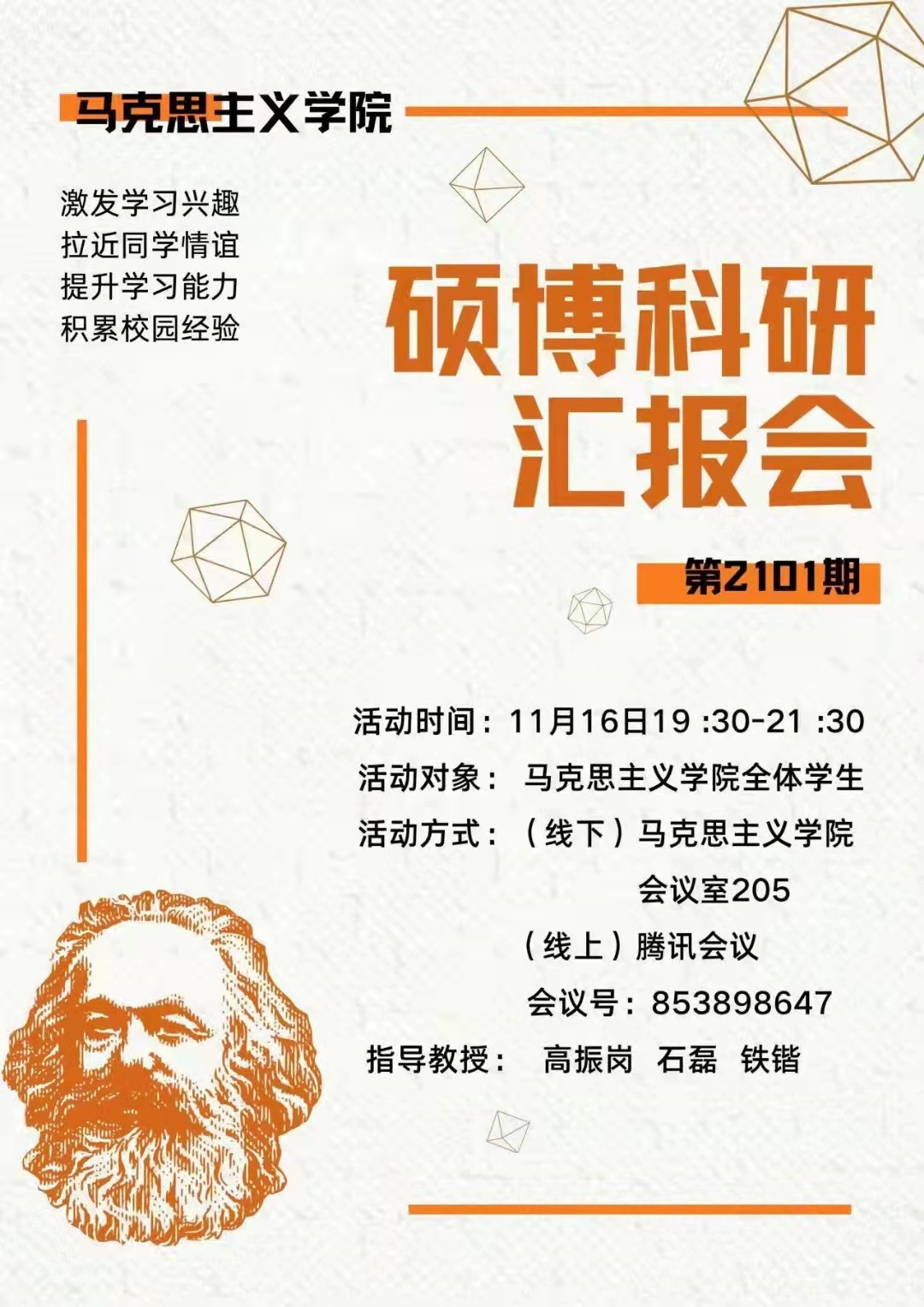 为促进员工成长,提升公司产品质量,推进马克思主义理论团队建设,11月16日晚7:30,足球赌注网站在骊山校园1教205会议室举行了第2101期硕博科研汇报会。经理高振岗、副经理铁锴,以及骊山校区硕士、雁塔校区博士共计100余人,分别在线下、线上参加了此次活动。活动由副经理铁锴主持。