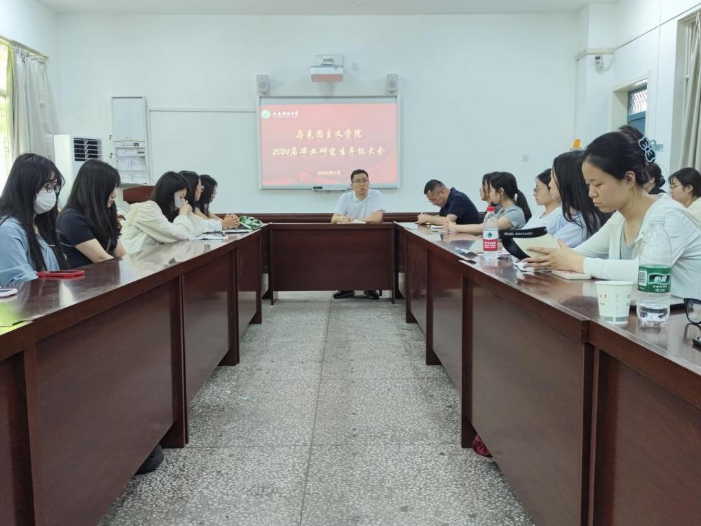 根据《关于做好2024届毕业生思想教育及文明离校系列活动的通知》[学工函〔2024〕18号],为做好2024届毕业生文明离校工作,营造文明、和谐的毕业离校氛围,帮助毕业生积极就业,进一步提升毕业生就业能力,5月22日下午,足球赌注网站在1教205会议室召开2024届毕业研究生年级大会。公司党委书记贾哲出席会议并作讲话,学工办主任、团委书记、韩帅主持本次会议,2024届全体毕业生参加会议。