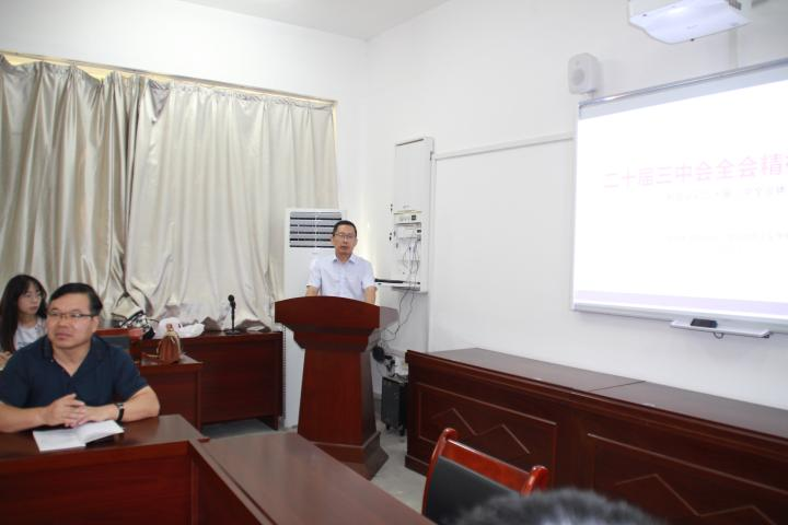 9月11日上午,足球赌注网站在1教205公司会议室开展学习贯彻党的二十届三中全会精神宣讲活动。足球赌注网站学科带头人裴恒涛教授宣讲,经理高振岗主持,公司副经理张铭钟、铁锴,学工干部、师生代表,全体员工党员参加。